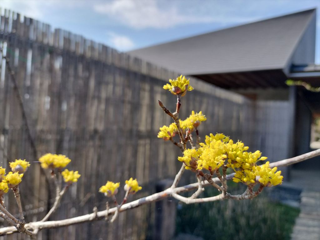 サンシュユや薄ピンクの梅が可愛い花を開いてくれています♪