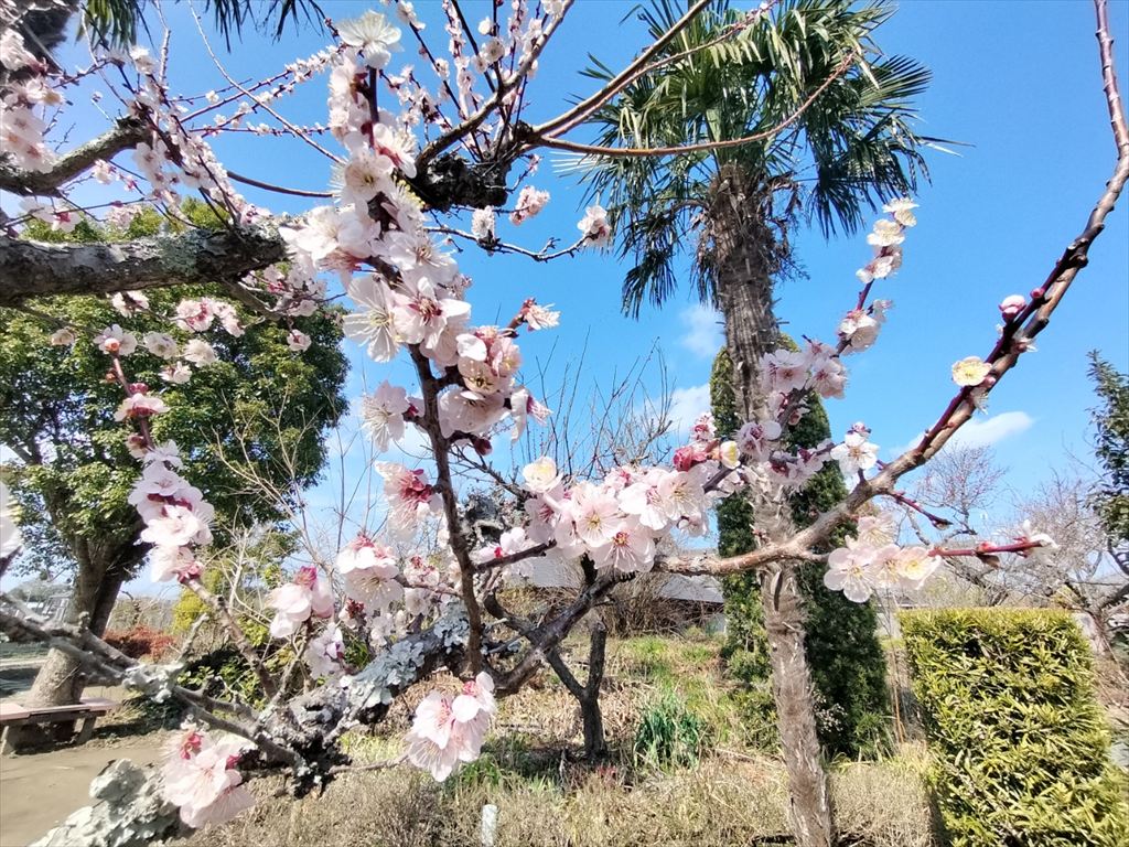 三月になり境内では河津桜がやさしく咲き、